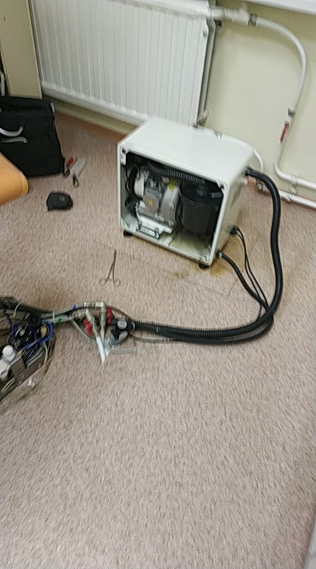 • Осмотр шлангов слюноотсоса и пылесоса на предмет обнаружения трещин, ослабления хомутов и зажимов и возникновение утечек.