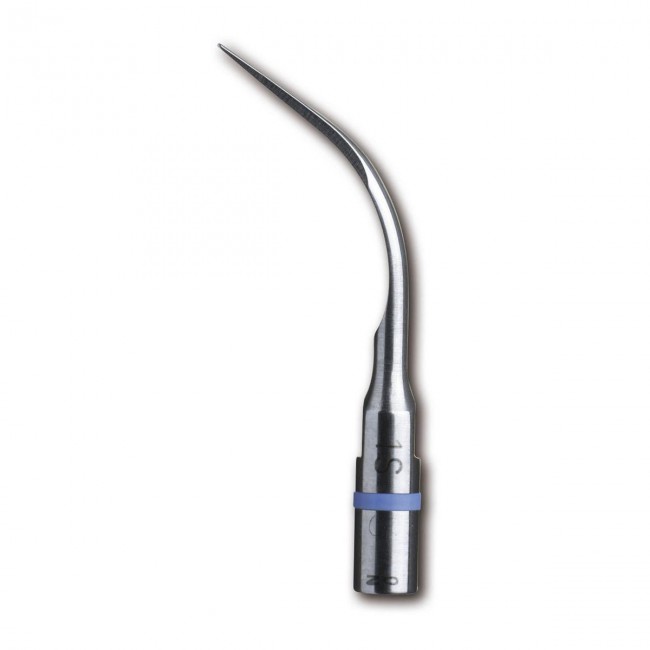 Насадка № 1S. Тонкая, наддесневая и поддесневая, пародонтологическая, с переменным профилем сечения, от полукруглого к круглому, закругленный атравматичный кончик. Функциональный стержень имеет изгиб большого радиуса.