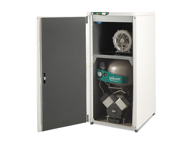 • DUO  - компрессор с отсасывателем в двухразделенном шкафу, с ресивером 25 л (75л/мин), EKOM (Словакия)