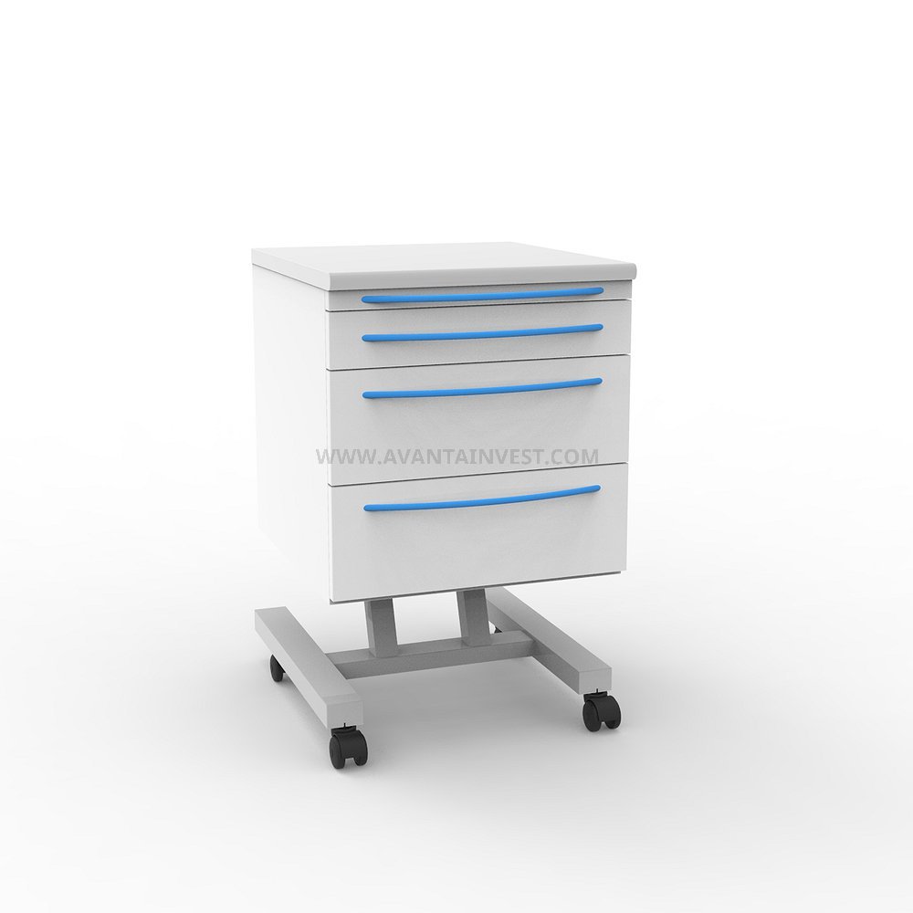 -Столик врача А-013 мобильный с 3 ящиками (основание из прямоугольной трубы), Аванта (Россия)