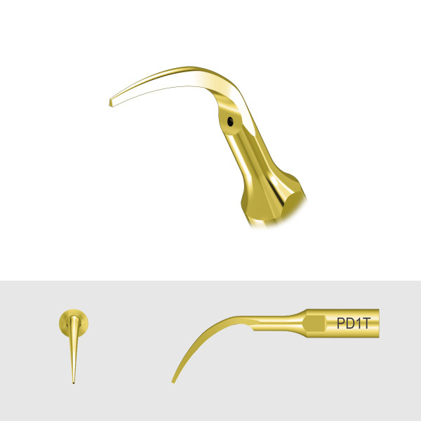• Узкая и острая насадка PD1T c нитрид-титановым напылением, рекомендуется для очистки и ирригации зубо-десневой бороздки или парадонтальных каналов.