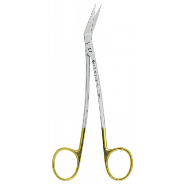 Ножницы для десны N2 изогнутые в области лезвия и в области ручки с твердосплавными вставкам, 16,5см