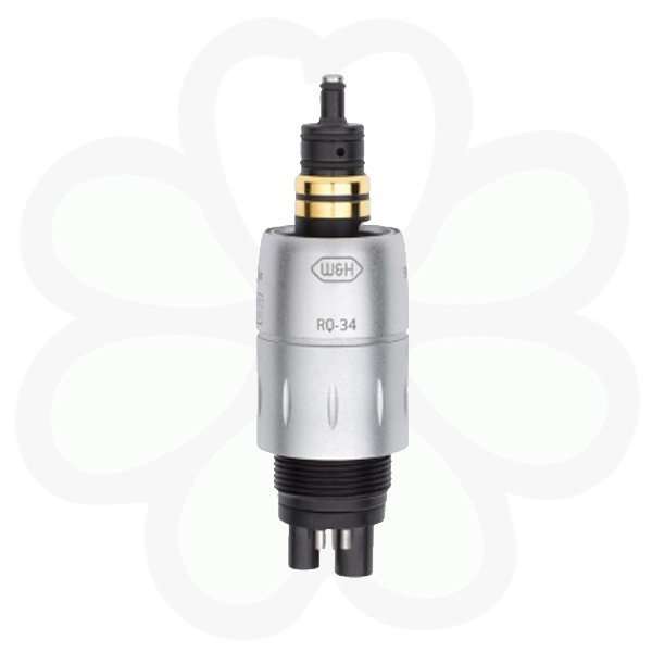 • RotoQuick-34 - быстросъемный переходник для турбинных наконечников с фиброоптикой, с регулировкой подачи воды (для 4-канального соединения MidWest)