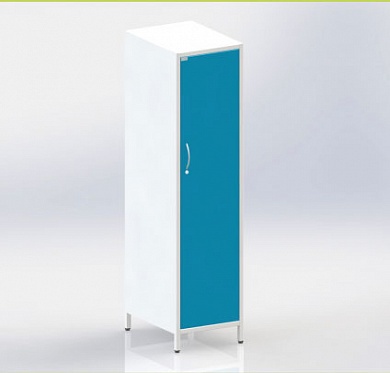 Шкаф одностворчатый на ножках, с замком, с двумя полками и штангой для одежды.