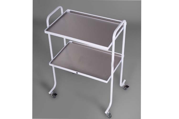 Металлический столик с двумя съёмными лотками 570 х 400 мм из нержавеющей стали или стекла (2 вариации исполнения).