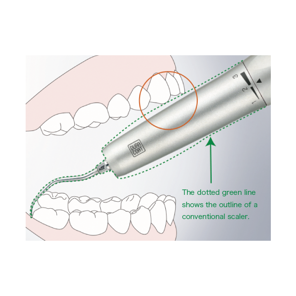 - Компактный корпус. Гладкий дизайн скалера S970 обеспечивает полную видимость операционного поля и превосходный доступ в труднодоступные места.